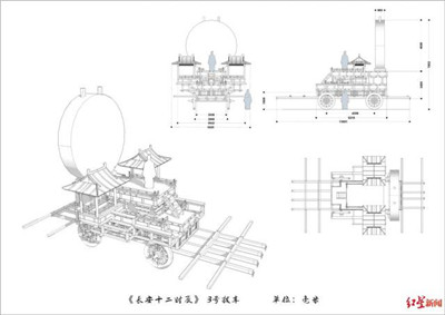 除了做彩燈外,宋建平所在的公司還負責了劇中拔車的制作。宋建平介紹,拔車類似木頭推車,巡游時可以放置彩燈,表演人員可以站在上面。在制作時,工人參考了古時戰(zhàn)車的圖片,并在拔車上安裝了一個木頭平臺方便站人和放置彩燈。整個拔車制作過程并不復雜,只是劇組要求做舊。為此,制作時的所有木料都用火燒了一遍,再打磨、暴曬兩到三周。