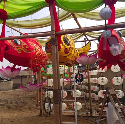 歷時7個月,造出6萬余個彩燈 上元節(jié),即元宵節(jié),是最重要傳統(tǒng)民俗節(jié)日之一。歷代以來,這一天,大街小巷都要張燈結(jié)彩,人們上街巡游,共同慶祝佳節(jié)。從小到劇中兒童在街頭玩樂所持的花燈,大到7、8米高的巡游燈組。公司項目負(fù)責(zé)人宋建平介紹,在2016年時,劇組四處考察,聯(lián)系彩燈制作公司進(jìn)行樣品制作,經(jīng)過反復(fù)溝通、對接、樣品比選,最終確定由他們負(fù)責(zé)這個項目。受劇組委托,2017年,一支40余人的制作團(tuán)隊專門到了象山影視城,由于制作材料特殊性,所有的原材料基本都是從廠里通過物流寄送到影視城的。前前后后歷時7個月,完成了觀眾看到的劇中滿屏懸掛的彩燈6萬余個,以及140余組祥云燈組、近百個鯉魚燈、10組武士造型燈組以及6個拔車。在劇中頻頻出現(xiàn)的鯉魚燈,制作十分精美,且栩栩如生。因鯉魚寓意吉祥豐收,在民間起源很早且備受歡迎。宋建平說,此前,公司就為《妖貓傳》等影視劇制作過鯉魚燈。在《長安十二時辰》中的鯉魚燈,造型頗大,大部分都有約7、8米高,項目工人便先用鐵絲一根根做出魚鱗的形狀,再一層層鋪上八美緞,呈現(xiàn)出魚鱗立體效果。
