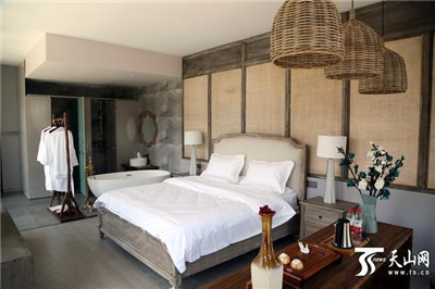 7月17日,平西梁村一家民宿的客房。今年年初開(kāi)業(yè)的民宿“棲宿”,坐落在平西梁村主干道邊,和遠(yuǎn)處的南山景區(qū)“遙相對(duì)望”,走進(jìn)大門,呈現(xiàn)的風(fēng)格是現(xiàn)代時(shí)尚元素與鄉(xiāng)村原生態(tài)特色文化共融,營(yíng)業(yè)以來(lái)該民宿已成為烏魯木齊縣的“網(wǎng)紅民宿”。“平西梁村具有得天獨(dú)厚的地理環(huán)境,周圍有特色小鎮(zhèn)、滑雪場(chǎng),今年還打造了萬(wàn)畝花海,依托這樣的旅游資源發(fā)展鄉(xiāng)村旅游特色民宿是一種新的嘗試。”“棲宿”負(fù)責(zé)人袁守余說(shuō)。